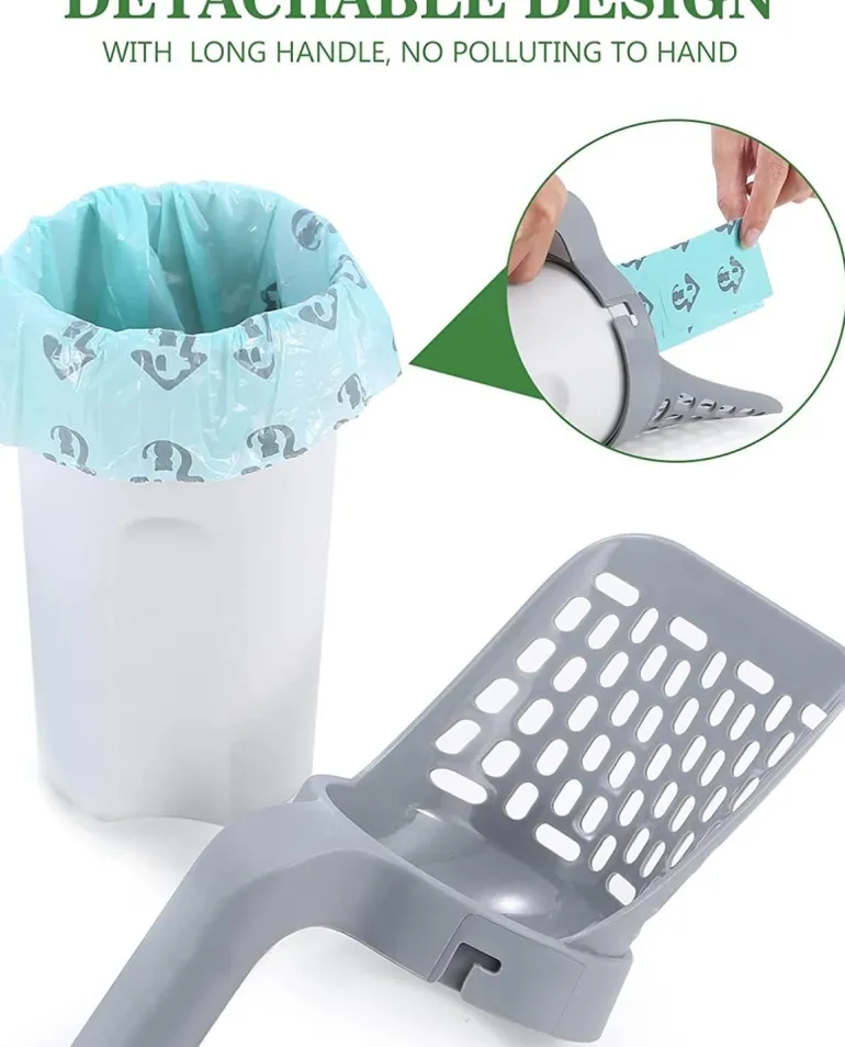 Erleichtern Sie die Katzentoilettenpflege mit unserer tragbaren Katzenstreuschaufel, die speziell für Katzen und Hunde entwickelt wurde. Dieses innovative Werkzeug kombiniert eine Streuschaufel mit einem integrierten Abfalleimer und biologisch abbaubaren Müllbeuteln und sorgt so für eine effizientere Reinigung. Im Gegensatz zu herkömmlichen Schaufeln, die typischerweise große, oft nur einmal verwendete Müllbeutel benötigen, bietet unsere abnehmbare Schaufel kleine, umweltfreundliche Müllbeutel. Dieses Design reduziert nicht nur den Materialabfall, sondern hilft Ihnen auch, Abfälle verantwortungsvoll zu entsorgen.