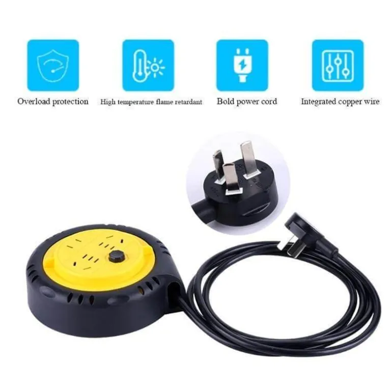 Diese tragbare Verlängerungskabeltrommel ist auf Komfort und Effizienz ausgelegt. Ihre kompakte Größe ermöglicht eine einfache Lagerung und macht sie zur perfekten platzsparenden Lösung für jede Umgebung. Der durchdachte Aufbewahrungsschacht ermöglicht eine problemlose Kabelführung und verhindert ein Verklemmen beim Auf- und Abwickeln des Kabels.