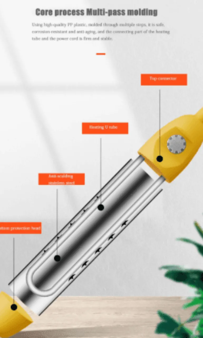 Dieser Tauchsieder wurde mit Blick auf Sicherheit und Langlebigkeit gefertigt und verfügt über eine Schutzschicht aus Edelstahl 304, die sicherstellt, dass er auch bei längerem Einsatz im Wasser rostfrei bleibt. Die Konstruktion verhindert direkten Kontakt mit dem Heizelement und reduziert so das Verbrennungsrisiko deutlich. Sollte die Wassertemperatur 70 °C überschreiten, schaltet der Heizer automatisch ab – für zusätzliche Sicherheit und ein beruhigendes Gefühl.