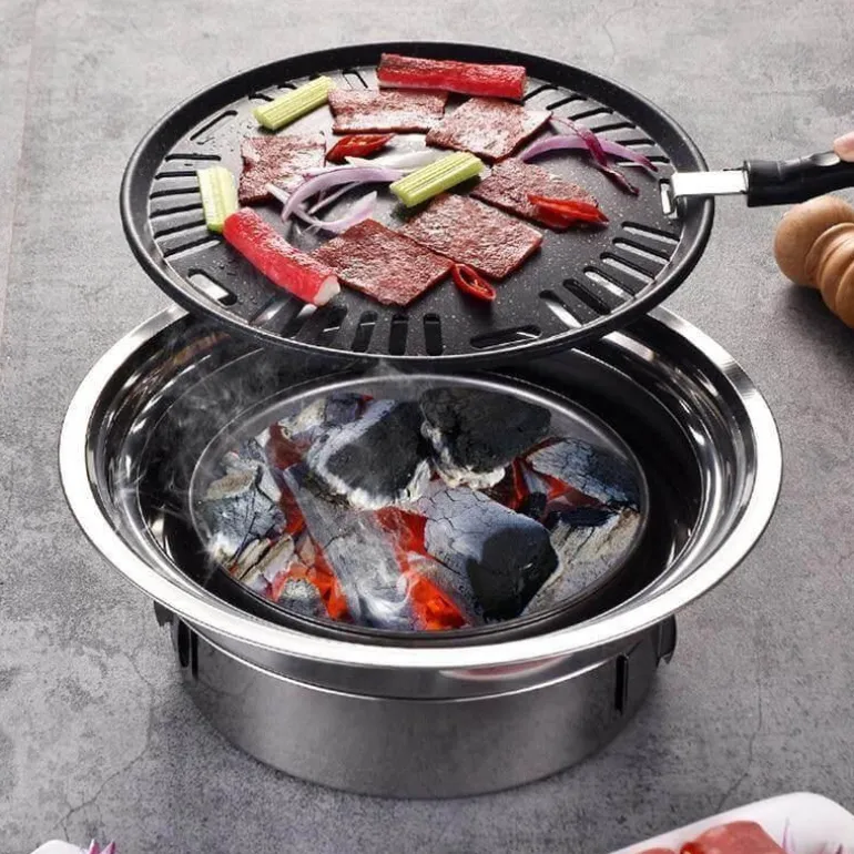 Entdecken Sie die Freude am Kochen im Freien mit diesem tragbaren Holzkohlegrill aus robustem Edelstahl im modernen koreanischen Design. Er ist der ideale Begleiter für Campingausflüge, Picknicks und Treffen im Freien und bietet eine zuverlässige Lösung für Ihre Grillbedürfnisse.
