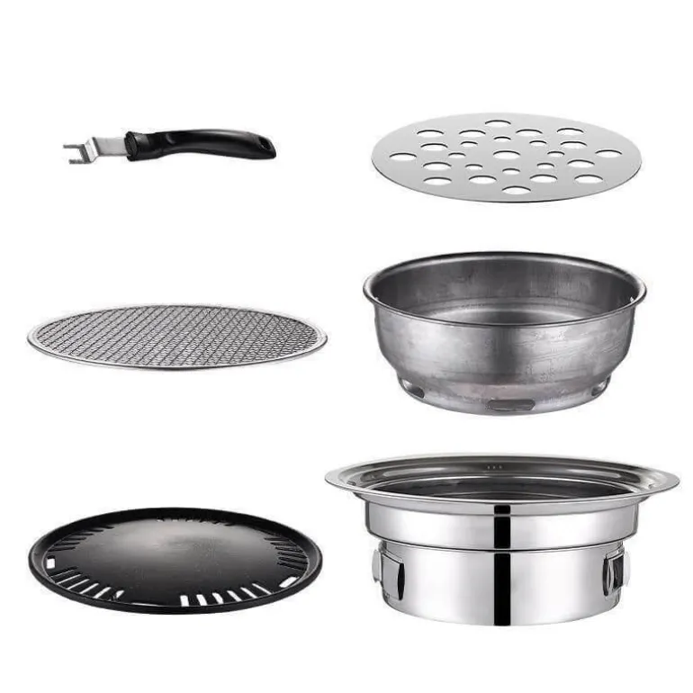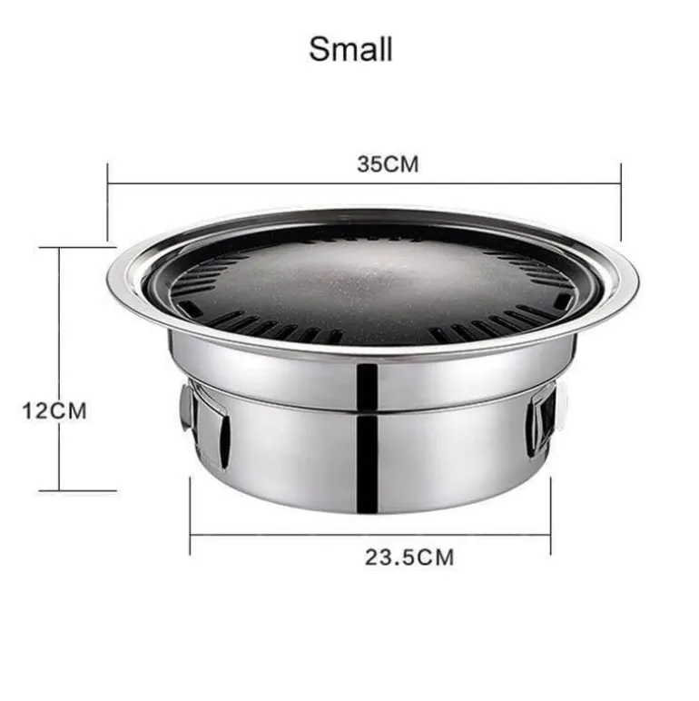 Dieser Grill ist für den mobilen Einsatz konzipiert und verfügt über eine abnehmbare Struktur, sodass er bequem in den Außenbereich transportiert werden kann. Seine kompakten Abmessungen – oberer Durchmesser 35 cm (13,8 Zoll), unterer Durchmesser 23,5 cm (9,3 Zoll) und Höhe 12 cm (4,7 Zoll) – ermöglichen einen einfachen Transport ohne Kompromisse bei der Funktionalität.