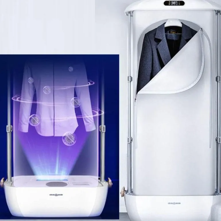 Entdecken Sie den Komfort des faltbaren elektrischen Dampftrockners, einer tragbaren Bügelmaschine, die Ihre Wäscheroutine vereinfacht. Verabschieden Sie sich von sperrigen Bügelbrettern und langwierigem Wäschetrocknen. Mit der effizienten Dampffunktion entfernen Sie mühelos Falten und Knicke aus verschiedenen Stoffen auf Knopfdruck. Hängen Sie Ihre Wäsche einfach auf, schalten Sie die Maschine ein und freuen Sie sich in wenigen Minuten über frische, knitterfreie Kleidung.