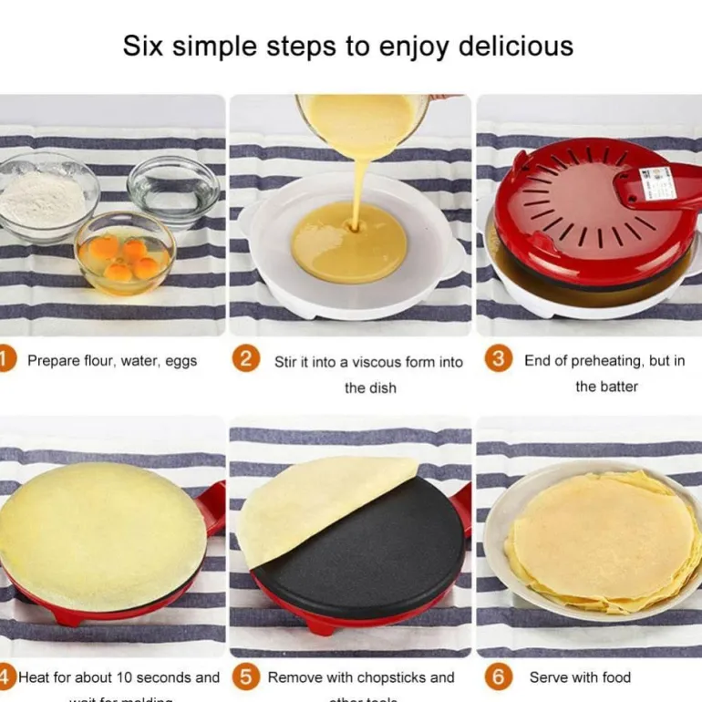 Die 600-W-Leistung und die benutzerfreundliche Ein-Knopf-Bedienung machen diesen elektrischen Pfannkuchenmaker zu einem unverzichtbaren Werkzeug für schnelles und effizientes Kochen. Genießen Sie frisch zubereitete Pfannkuchen und Crêpes mit minimalem Aufwand.