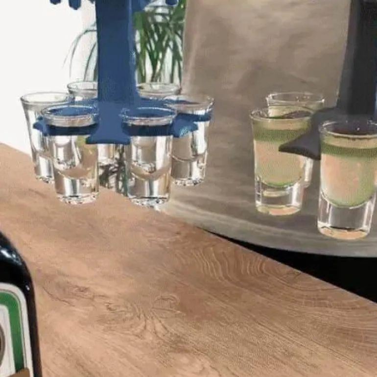 Treffen Sie sich mit Freunden zu einem lustigen Schnaps-Erlebnis? Dieser tragbare Halter und Spender für sechs Schnapsgläser ist die ultimative Lösung für das Servieren von Getränken bei Ihrer nächsten Veranstaltung. Mit der Möglichkeit, bis zu sechs Schnapsgläser gleichzeitig zu füllen, vereinfacht dieser innovative Getränkespender das Ausschenken und ermöglicht Ihnen, Ihre Gäste stressfrei zu unterhalten.