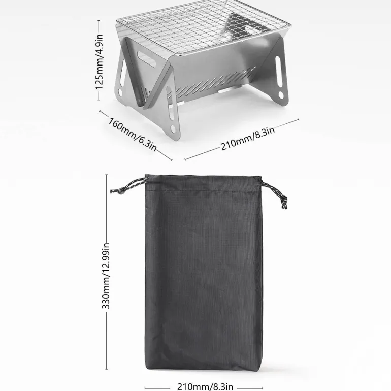 Dieser vielseitige Grill dient sowohl als Lagerfeuerrost als auch als Feuerstelle und eignet sich für zahlreiche Outdoor-Kochmethoden. Dank seines zusammenklappbaren Designs lässt er sich in wenigen Minuten auf- und abbauen und lässt sich einfach in der mitgelieferten Aufbewahrungstasche verstauen. Sie können nicht nur Holzkohle, sondern auch Äste und trockene Blätter als Brennstoff verwenden – praktische Optionen für Ihre Outdoor-Kochbedürfnisse.