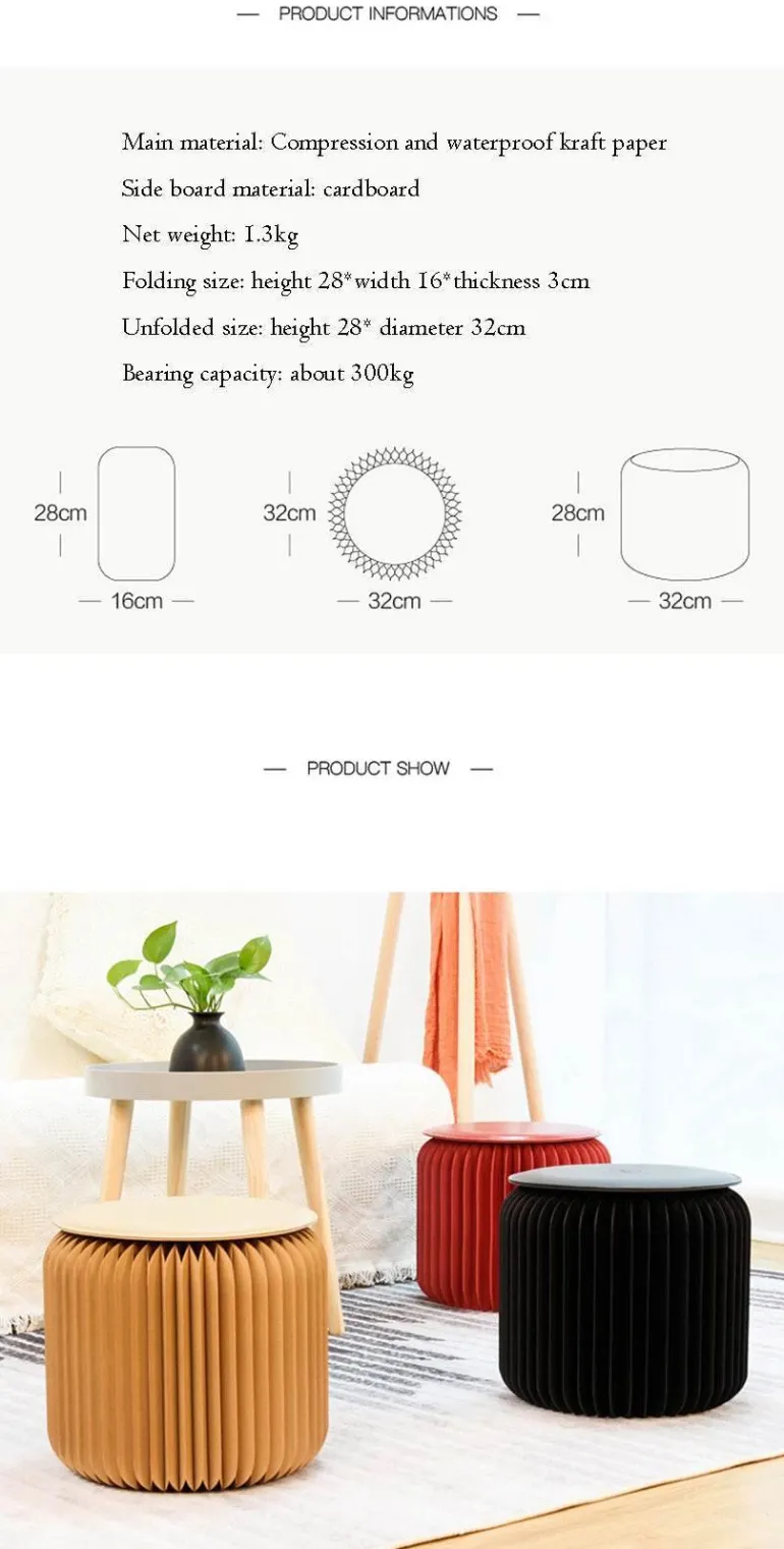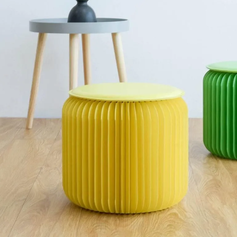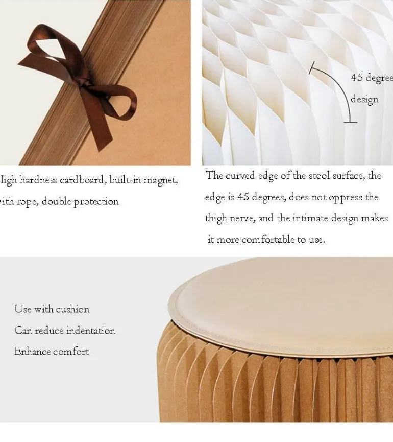 Diese Hocker aus strapazierfähigem Karton und Kraftpapier dienen nicht nur als funktionale Sitzgelegenheit, sondern verleihen Ihrem Wohnraum auch einen Hauch von Kreativität. Dank ihres einzigartigen Designs können sie auch als kleiner Tisch oder Couchtisch verwendet werden und fügen sich nahtlos in Ihre Einrichtung ein. Bei Nichtgebrauch können Sie sie bequem zusammenklappen und in einer Schublade verstauen – für Ordnung in Ihrem Zuhause.