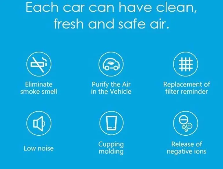 Wir präsentieren unseren tragbaren Luftreiniger, der mit seinem fortschrittlichen HEPA-Filter und der Negativ-Ionen-Technologie Ihre Raumluftqualität verbessert. Dieser Reiniger bekämpft effektiv häufige Probleme mit der Luftqualität wie Passivrauchen, schädliche Gase aus Neuwagen, Staub, PM2,5-Partikel und eine Vielzahl anderer Schadstoffe. Sein kompaktes und vielseitiges Design macht ihn zur idealen Wahl für Ihr Auto, Ihr Zuhause oder Ihr Büro. So genießen Sie auch bei geschlossenen Fenstern sauberere Luft.