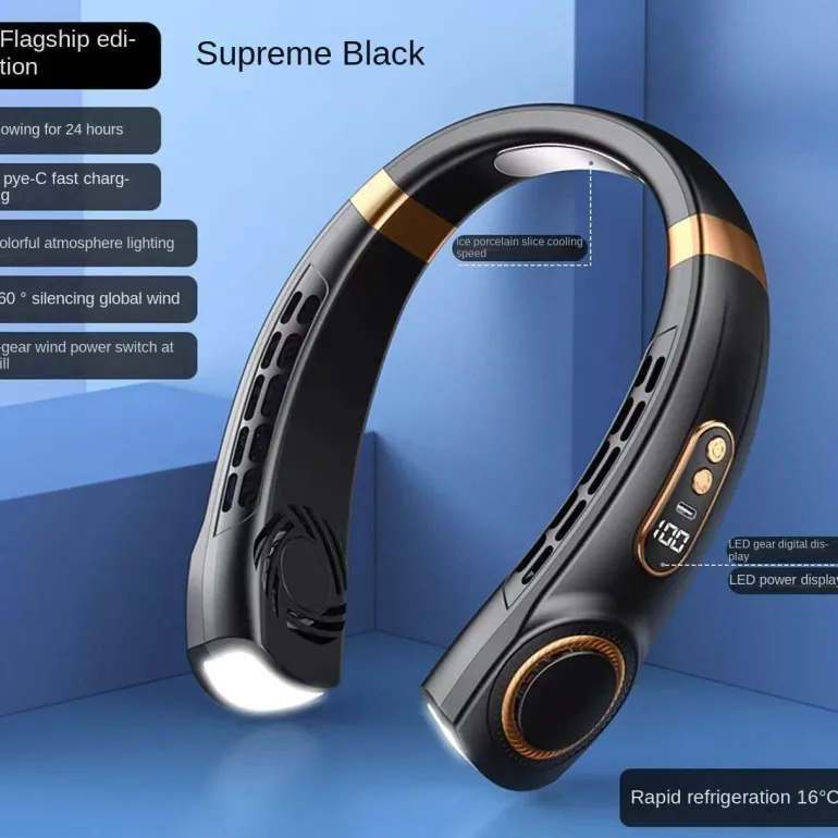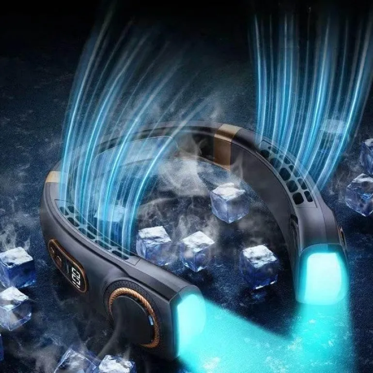 Bleiben Sie an heißen Tagen kühl und komfortabel mit dem tragbaren Nackenventilator mit Digitalanzeige. Dieses innovative und praktische Gerät vereint den Komfort eines Ventilators mit der Leichtigkeit eines tragbaren Accessoires. Mit seinem schlanken Design eignet sich dieser Nackenventilator perfekt für Outdoor-Aktivitäten, den Weg zur Arbeit oder einfach zum Entspannen zu Hause.