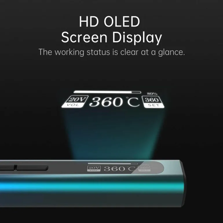 Mit einem breiten Betriebsspannungsbereich von 9–20 V bietet dieser Lötkolben ein beeindruckendes Temperaturregelspektrum von 80 °C bis 420 °C. Diese Vielseitigkeit ermöglicht präzises Löten für eine Vielzahl von Projekten. Verlassen Sie sich auf die Temperaturgenauigkeit von ± 1 % °C und die Möglichkeit zur manuellen Kalibrierung bis ± 50 °C, um stets optimale Ergebnisse zu erzielen. Der übersichtliche OLED-Bildschirm verbessert das Benutzererlebnis durch die übersichtliche Anzeige Ihrer Einstellungen, während die Typ-C-Stromschnittstelle die Konnektivität vereinfacht. Mit einer Heizleistung von 65 W sorgt dieses Gerät für schnelle und effektive Leistung und wird mit Wechselstrom betrieben, um einen zuverlässigen Betrieb zu gewährleisten.