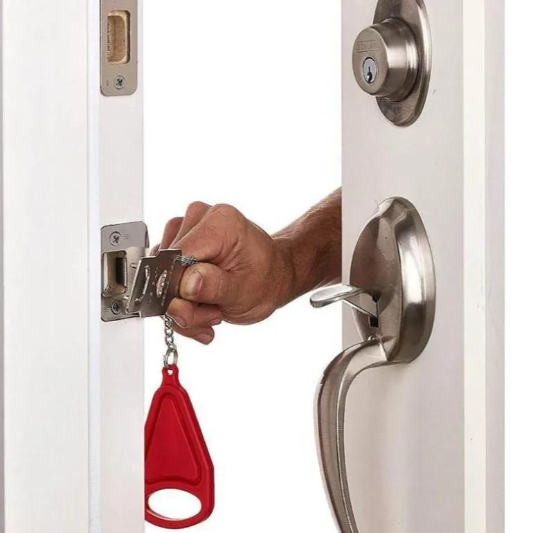 Das tragbare Reisetürstopperschloss ist mit jeder nach innen öffnenden Tür kompatibel und lässt sich bei Bedarf einfach installieren und entfernen. Dank seines leichten Designs ist es bequem zu tragen und sorgt dafür, dass Sie überall beruhigt sein können.