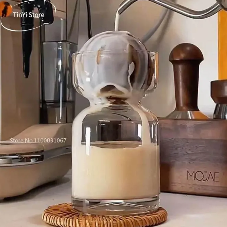 Dieser Becher aus hochwertigem, umweltfreundlichem Glas eignet sich für eine Vielzahl von Getränken. Ob Sie eine dampfende Tasse Kaffee genießen, einen kräftigen Latte Macchiato genießen, sich mit Saft erfrischen oder bei einem kühlen Bier entspannen – sein anpassungsfähiges Design passt zu jedem Anlass.
