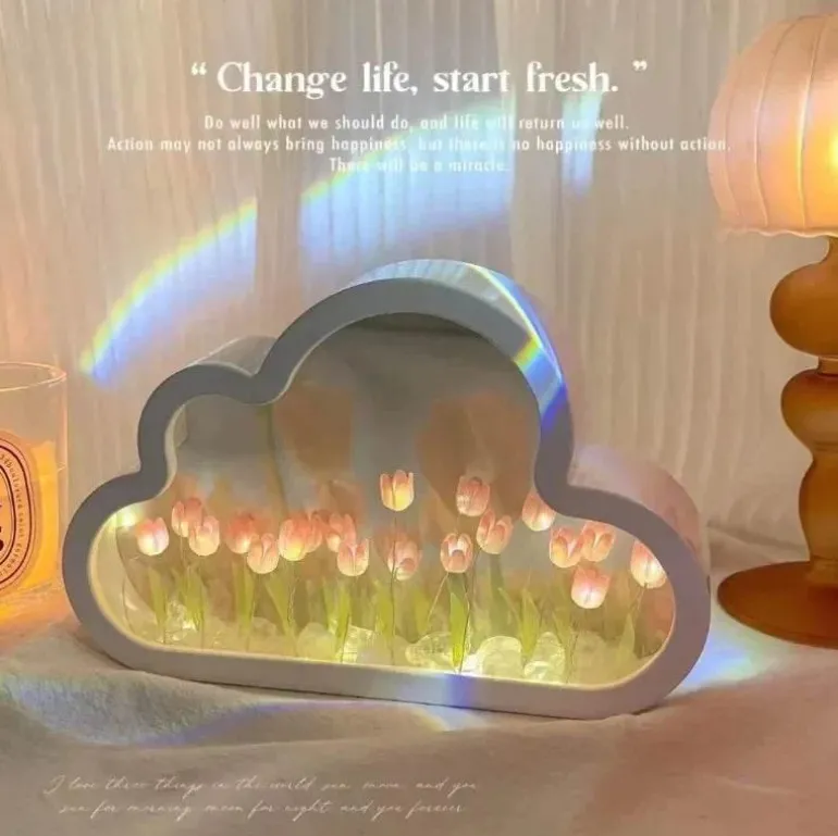 **Wie schneidet dieses Produkt im Vergleich zu anderen ab?** Anders als typische Nachtlichter mit schlichtem Design fällt diese Tulpenlampe durch ihre bezaubernde Blumenform und leuchtenden Farben auf und bietet eine einzigartige Mischung aus Funktionalität und Stil, die jede Inneneinrichtung aufwertet.
