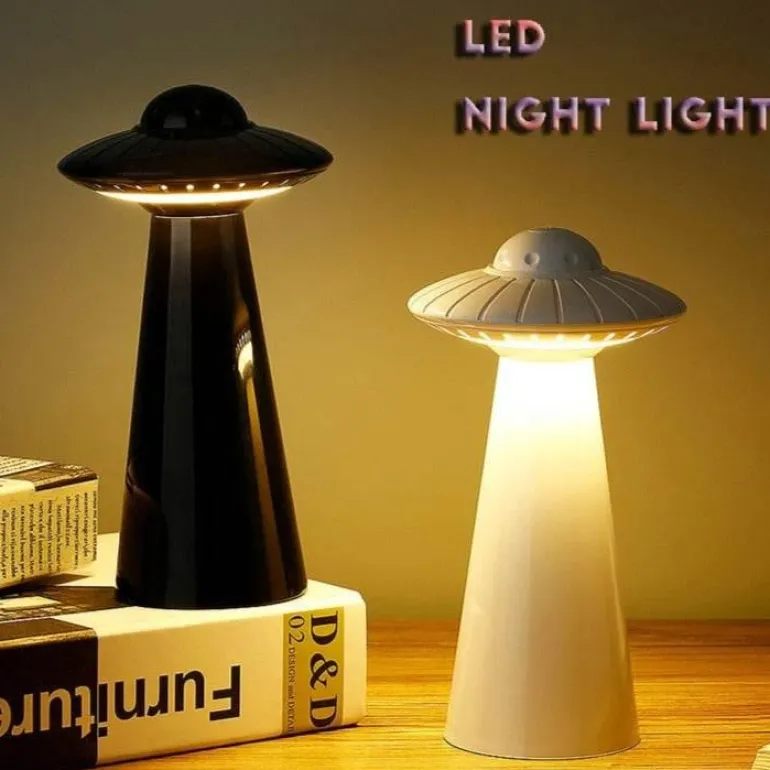 Beleuchten Sie Ihren Arbeitsplatz oder Ihre Leseecke mit dieser wiederaufladbaren LED-Schreibtischlampe im UFO-Stil. Sie ist ideal für alle, die gerne bis spät in die Nacht aktiv sind, ohne ihren Partner zu stören. Mit ihrem sanften Licht ist diese Lampe sowohl funktional als auch stilvoll und somit eine hervorragende Ergänzung für jeden Schreibtisch.