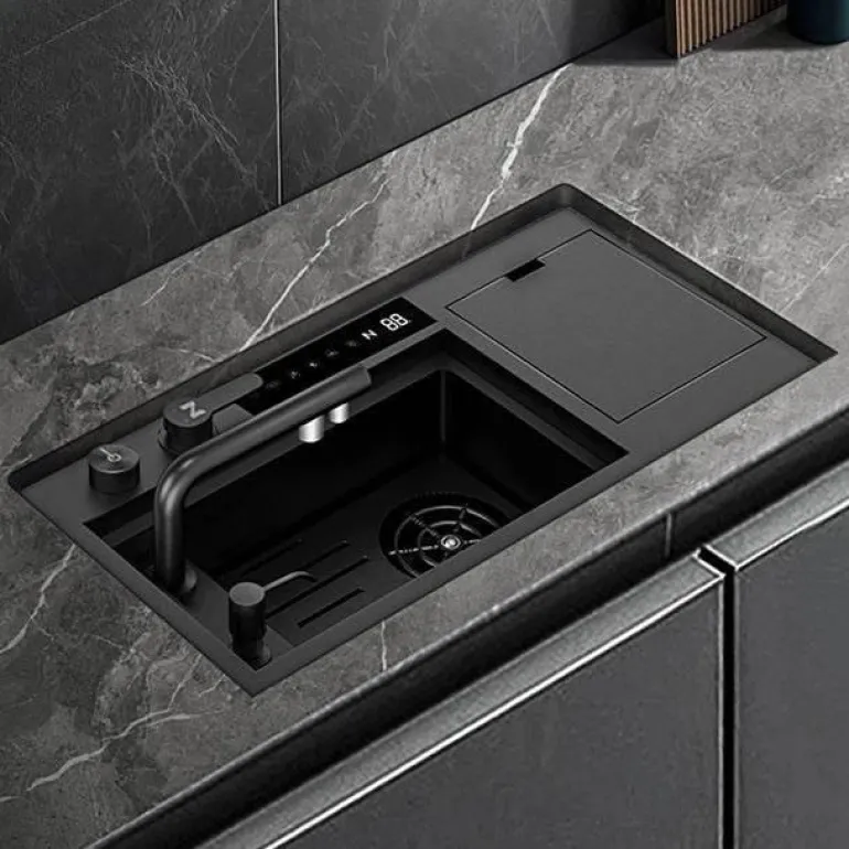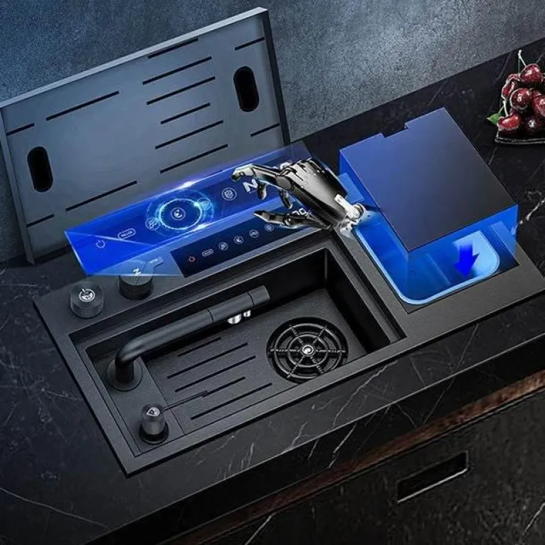 Entdecken Sie die perfekte Kombination aus Stil und Technologie mit dieser modernen Ultraschall-Edelstahlspüle. Ihr modernes Design fügt sich harmonisch in jedes Küchenambiente ein und macht sie zu einer edlen Ergänzung für Ihren kulinarischen Raum. Die innovative Ultraschalltechnologie garantiert eine effiziente und gründliche Reinigung und sorgt dafür, dass Ihre Spüle mit minimalem Aufwand makellos bleibt. Werten Sie Ihr Küchenerlebnis mit dieser durchdachten Kombination aus Eleganz und Funktionalität auf.