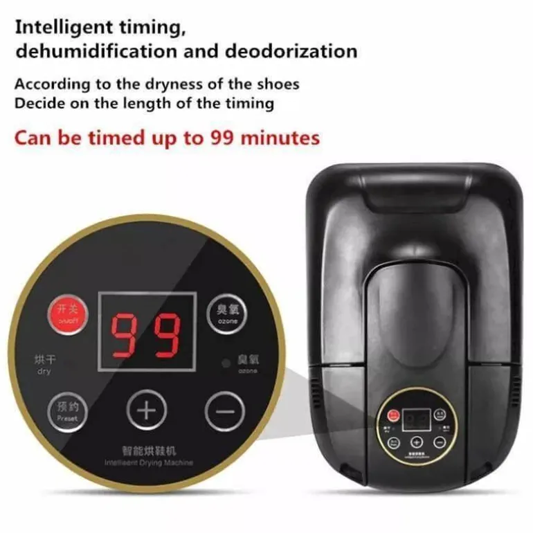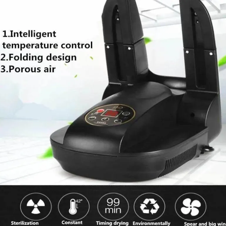 Mit dem integrierten intelligenten Timer können Sie präzise Trocknungszeiten für verschiedene Schuhtypen einstellen und so den Energieverbrauch optimieren. Dieser Schuhtrockner arbeitet mit einem konstanten Temperaturbereich von 42 bis 50 °C und trocknet Ihre Schuhe dank des Heizgebläses in nur wenigen Minuten. So erhalten Sie eine schnelle und effektive Trocknungslösung.