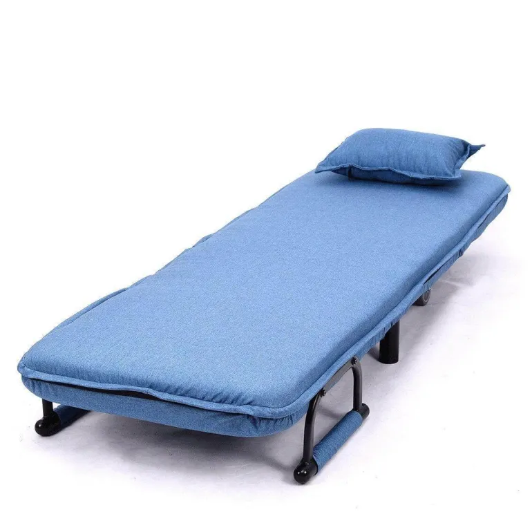 Dieser Stuhl aus hochwertigem Polyester, robustem Stahl und weichem Schaumstoff ist langlebig und bietet gleichzeitig höchsten Komfort. Er verwandelt sich mühelos vom Sessel in ein Bett oder eine Chaiselongue und erfüllt so Ihre Entspannungsbedürfnisse. Zwei eingebaute Rollen sorgen für einfache Mobilität, sodass Sie ihn mühelos nach Belieben neu positionieren können.