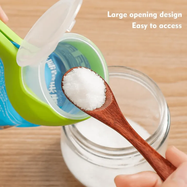 Mit diesen Clips bleiben Sie organisiert und sauber. Sie müssen sie nicht entfernen; öffnen Sie einfach den Deckel, um Snacks ohne Verschütten auszugießen. Das macht sie zu einem tollen Geschenk für alle, die das Verschließen und Ausgießen von Lebensmitteln vereinfachen möchten.