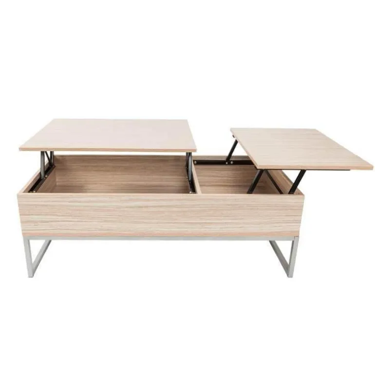 Das innovative Design ermöglicht es Ihnen, beide Seiten des Tisches anzuheben, wodurch zwei geräumige, versteckte Fächer zum Vorschein kommen, die die Vielseitigkeit des Tisches erweitern. Dank dieser durchdachten Funktion eignet er sich ideal für die Aufbewahrung von Obst und Büchern bis hin zu Zeitschriften, Teeservice und Fernbedienungen und fügt sich gleichzeitig nahtlos in Ihre bestehende Einrichtung ein.