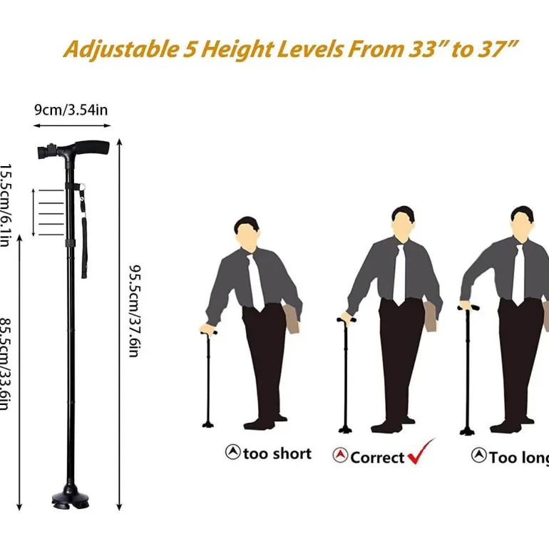 Der verstellbare LED-Gehstock ist eine zuverlässige und anpassungsfähige Mobilitätshilfe, die die Stabilität verbessert und den Benutzer unterstützt. Der robuste Aluminiumschaft vereint Funktionalität und Benutzerfreundlichkeit und ist somit die ideale Wahl für Personen, die beim Gehen Unterstützung benötigen.