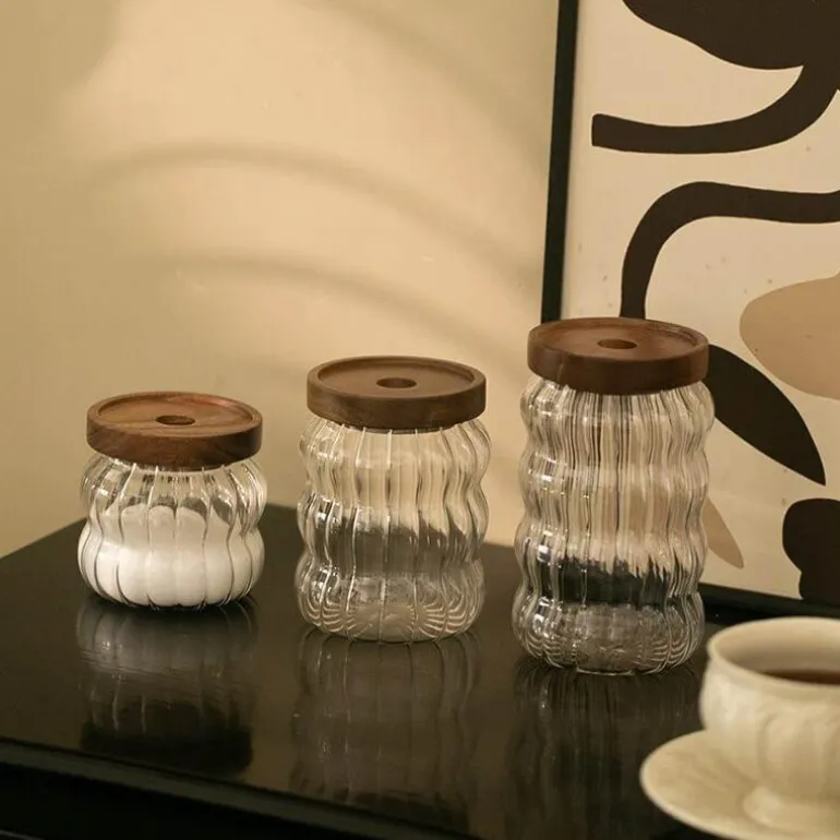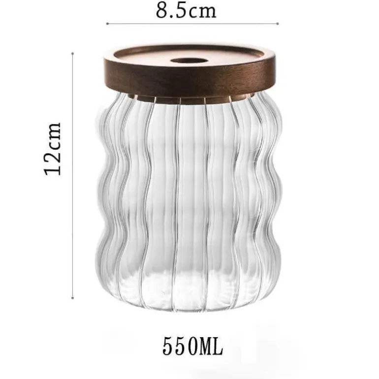Das gewellt-gestreifte Glas-Vorratsglas vereint Stil und Funktionalität und ist eine hervorragende Ergänzung für Ihre Küche. Der dekorative Behälter besticht durch sein einzigartiges gewelltes Streifendesign aus transparentem Glas, sodass Sie den Inhalt gut erkennen können. Es eignet sich perfekt zum Ordnen verschiedener Trockenwaren und verleiht Ihrer Kücheneinrichtung gleichzeitig einen Hauch von Eleganz. Der dicht schließende Deckel sorgt dafür, dass Ihre Lebensmittel frisch bleiben und ist somit eine zuverlässige Wahl für den täglichen Gebrauch. Hergestellt aus hochwertigem Glas, schafft dieses leichte und dennoch robuste Glas die perfekte Balance zwischen Ästhetik und Funktionalität und bereichert Ihr Zuhause mit Schönheit und Nutzen.