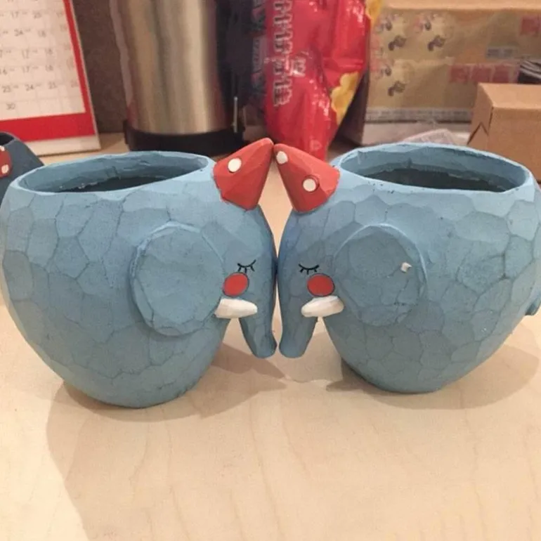 – **Elefant:** Länge 11 cm, Höhe 10 cm; Pflanzgröße 6,5 cm x 5 cm x 7,5 cm