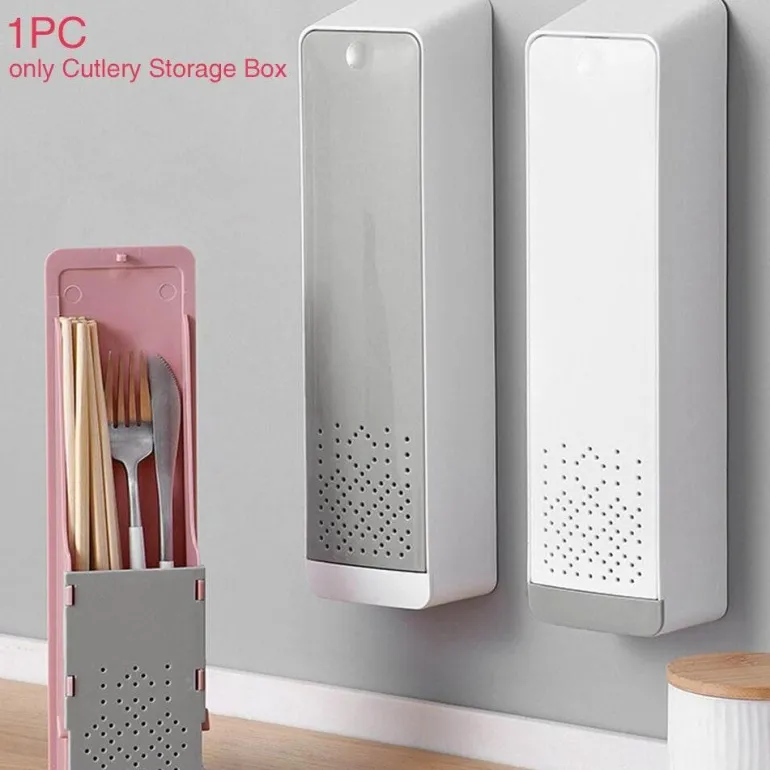 Entdecken Sie mit diesem innovativen Besteck-Organizer zur Wandmontage eine praktische Lösung für Ihre Aufbewahrungsbedürfnisse in der Küche. Das kompakte Design vereint Aufbewahrungs-, Abtropf- und Aufhängefunktionen und ist ideal, um Ihre Utensilien wie Löffel, Essstäbchen und Gabeln ordentlich und griffbereit aufzubewahren.