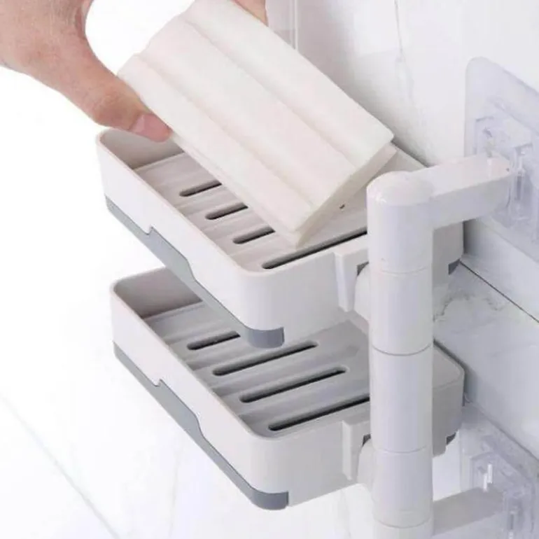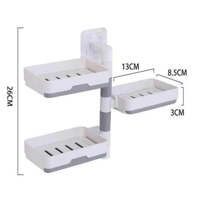 Mit zwei oder drei Ebenen eignet sich dieser Halter nicht nur für Seife, sondern auch für Kosmetika, Shampoos und Lotionen und bietet flexible Aufbewahrungsmöglichkeiten. Das um 180 Grad drehbare Design ermöglicht eine optimale Platzierung und passt sowohl in 90- als auch in 180-Grad-Wandkonfigurationen.