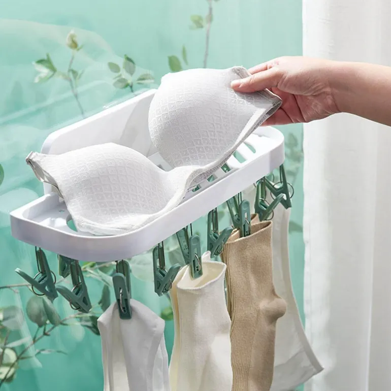 Ausgestattet mit 17 Wäscheklammern maximiert dieser Wäscheständer die Platzeffizienz und stellt sicher, dass alle Ihre wichtigen Gegenstände ordentlich organisiert und gleichzeitig getrocknet werden können.