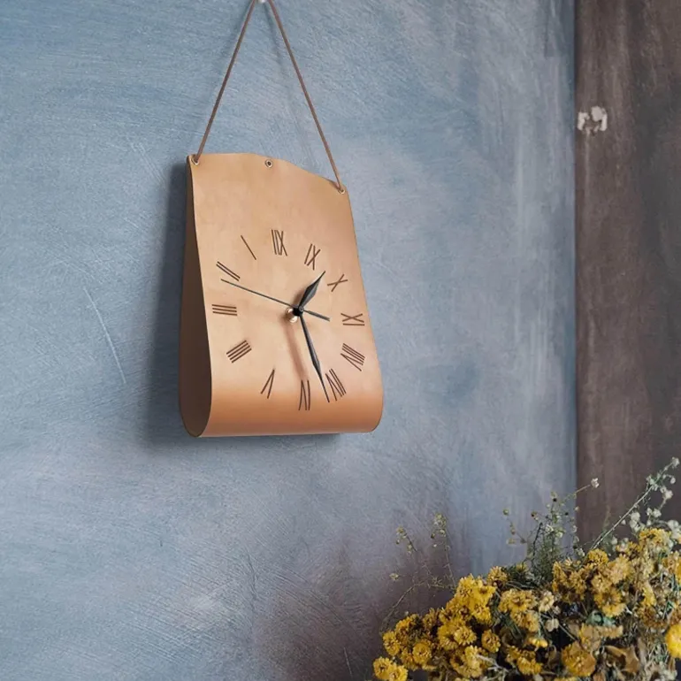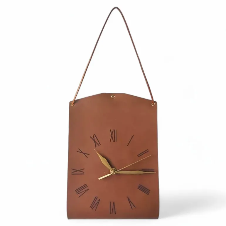 Entdecken Sie eine einzigartige Wanduhr, die auf kreative Weise an die Form einer Lederhandtasche erinnert und Ihrer Wohnkultur einen modischen Touch verleiht. Diese stilvolle Uhr definiert die traditionelle Zeitmessung neu und ist eine faszinierende Ergänzung für jeden Raum.