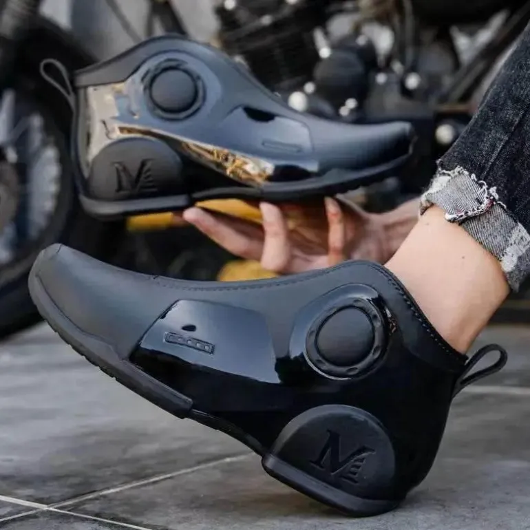 Entdecken Sie die ideale Kombination aus futuristischem Stil und praktischer Funktionalität mit unseren wasserdichten Regenstiefeln im markanten Cyberpunk-Look. Diese Stiefel aus hochwertigem Gummi verfügen über eine rutschfeste Laufsohle, die Sicherheit und Komfort auf nassen Oberflächen gewährleistet. Ihr markantes und auffälliges Design macht sie zur perfekten Wahl für alle, die auch an regnerischen Tagen ihre Individualität unter Beweis stellen möchten.