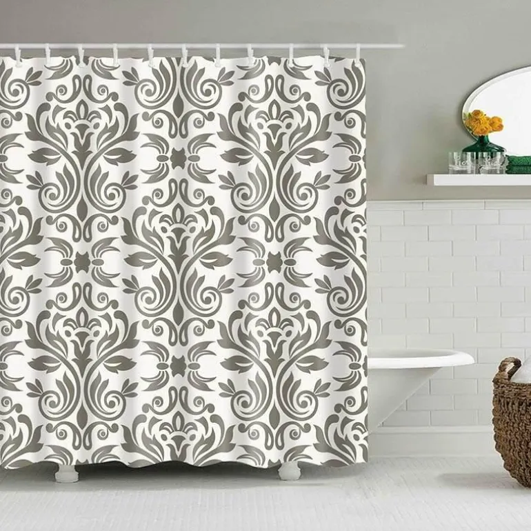 Verwandeln Sie Ihr Badezimmer in eine stilvolle Oase mit unserem eleganten, wasserdichten Duschvorhang, der Funktionalität und Ästhetik vereint. Dieser Vorhang aus hochwertigem, strapazierfähigem Polyester besticht durch sein zeitloses Damastmuster, das Ihrem Raum eine klassische und zugleich elegante Note verleiht. Der beschwerte Saum sorgt für einen sicheren und eleganten Halt, während die 12 verstärkten Stichlöcher am oberen Rand die Anbringung von Standardhaken erleichtern – Haken sind im Lieferumfang enthalten.