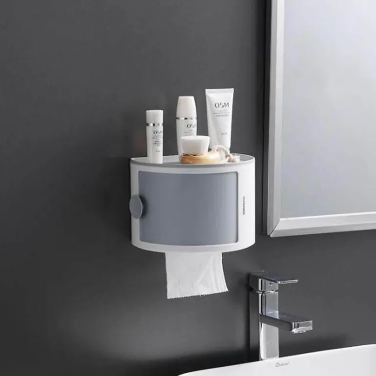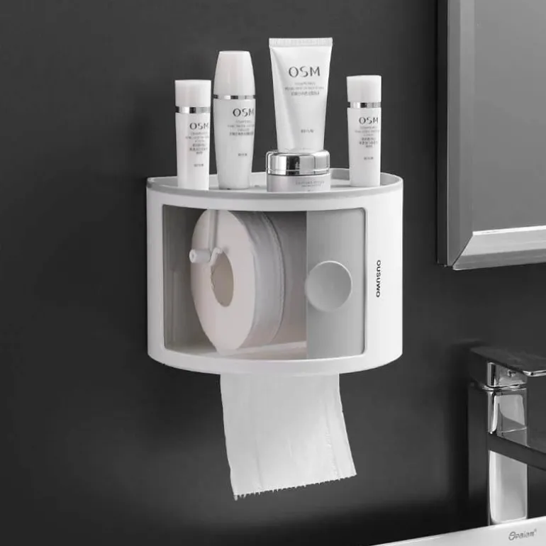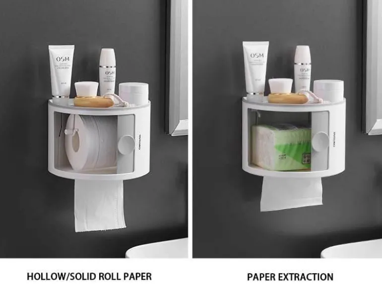 Im Paket enthalten ist ein wasserdichtes, mehrschichtiges Toilettenpapierhalterregal, das Ordnung und Eleganz in Ihr Badezimmer bringt.
