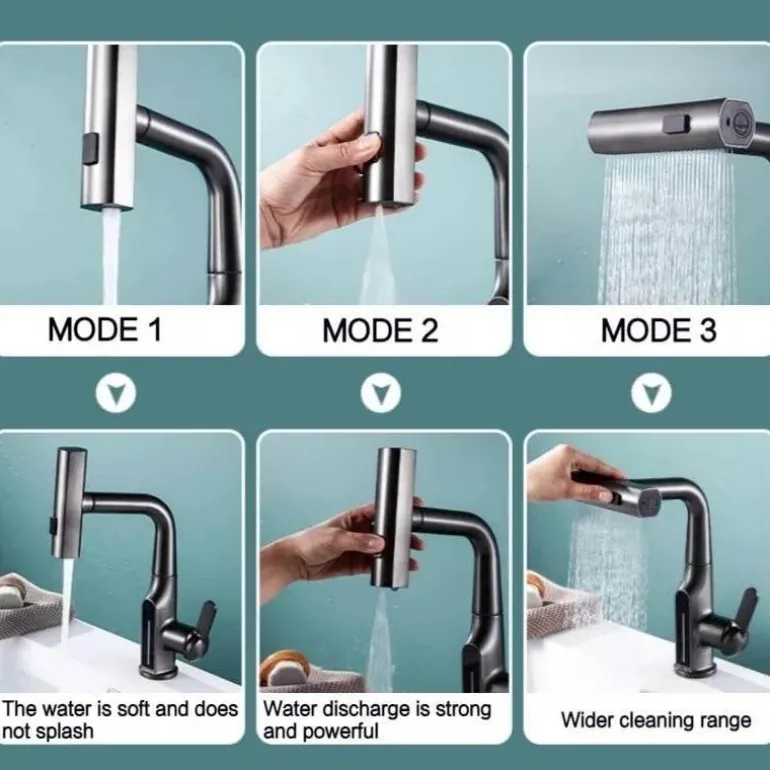 Im Vergleich zu herkömmlichen Wasserhähnen zeichnet sich dieses Produkt durch sein einzigartiges, anhebbares Design und die integrierte Temperaturanzeige aus und bietet erweiterte Funktionalität für den Alltag.