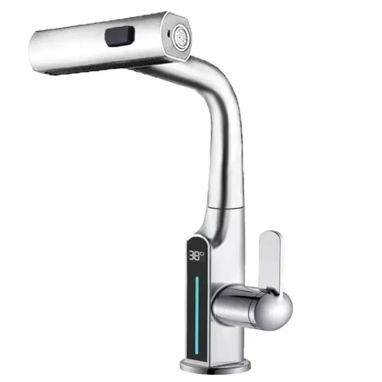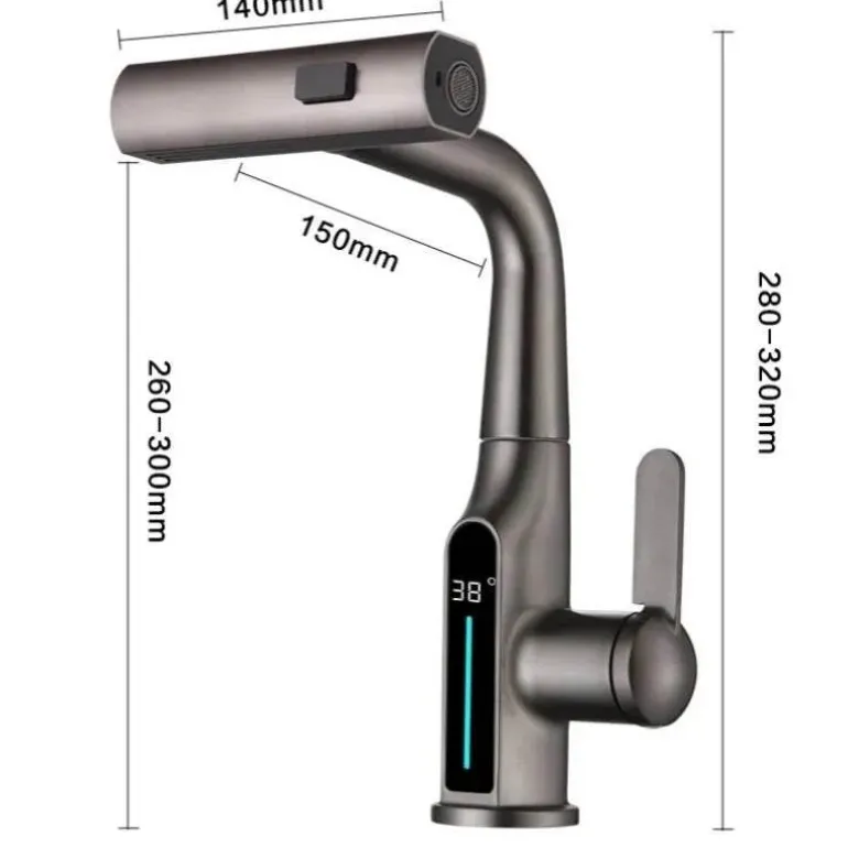 Verwandeln Sie Ihr Badezimmererlebnis mit der hebbaren digitalen Wasserfall-Waschtischarmatur mit Temperaturanzeige – eine Kombination aus modernem Design und Funktionalität. Die moderne Digitalanzeige zeigt die Wassertemperatur an und ermöglicht so eine einfache Überwachung für ein komfortables und sicheres Erlebnis. Das elegante Wasserfall-Design sorgt für einen ruhigen Wasserfall, der jedes Waschbecken optisch aufwertet und Ihren Alltag verschönert.