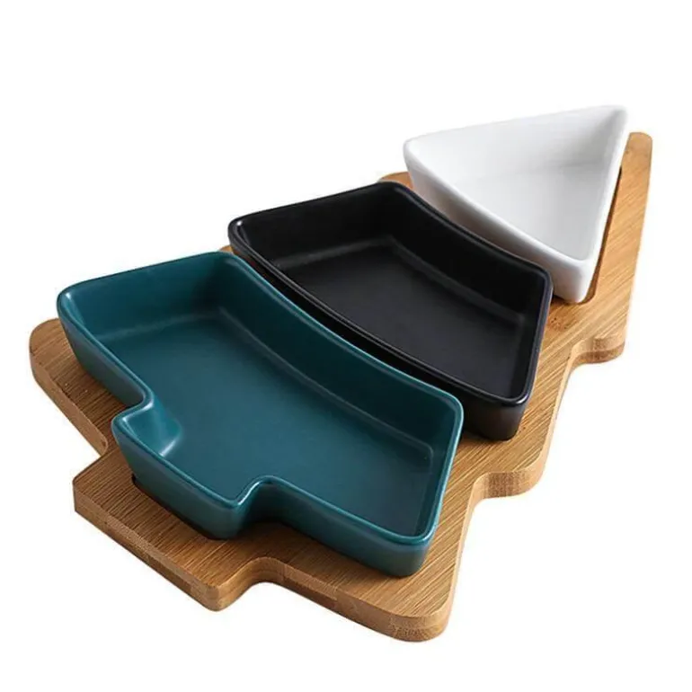 Verschönern Sie Ihre Feiertage mit unseren entzückenden Keramiktellern in Weihnachtsbaumform, perfekt ergänzt durch einen natürlichen Bambusständer. Dieses elegante Serviertablett aus hochwertiger Keramik und umweltfreundlichem Bambus vereint Kreativität mit Funktionalität.