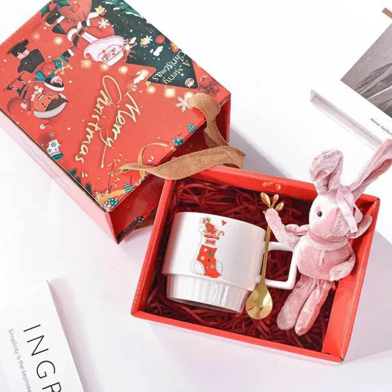 Das Weihnachtsmann-Keramikbecher-Set wird hübsch verpackt in einer Geschenkbox geliefert und enthält eine süße Hasenpuppe. Damit ist es ein schönes Geschenk für Freunde, Familie oder einfach für sich selbst. Die runde Form und der ergonomische Griff sorgen für einen angenehmen Griff, während die umweltfreundlichen Materialien eine nachhaltige Wahl für bewusste Verbraucher unterstreichen.