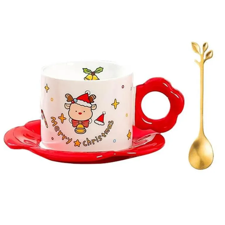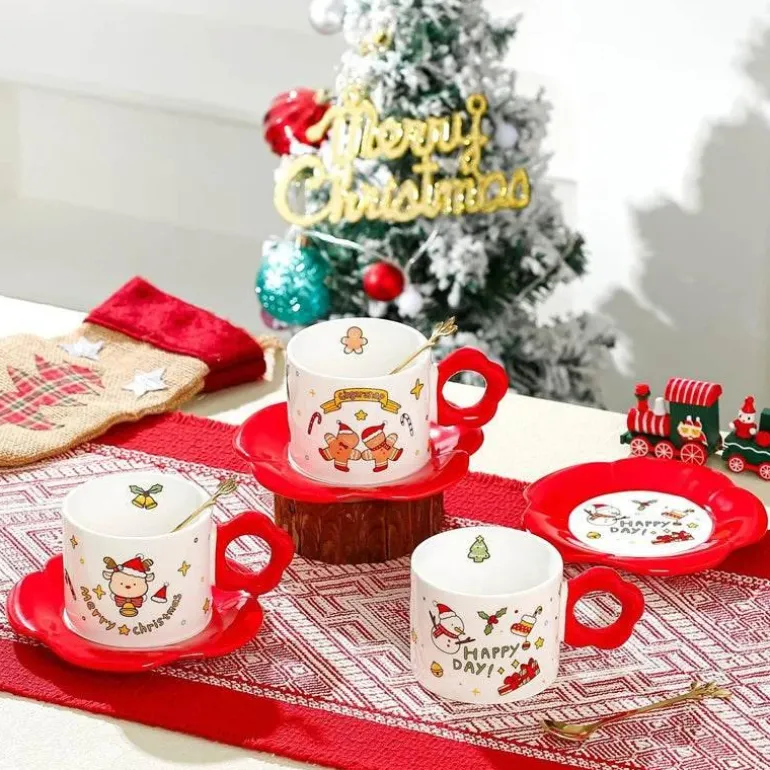 Dieses Teeservice aus hochwertiger Keramik besticht durch sein skurriles Cartoon-Design, das Ihre Feierlichkeiten mit Sicherheit zum Leben erweckt. Das Set besteht aus einer wunderschön gearbeiteten Tasse mit bequemem Henkel, einer hübschen Untertasse und einem passenden Löffel – alles in leuchtendem Rot gehalten, das den Geist der Saison verkörpert.