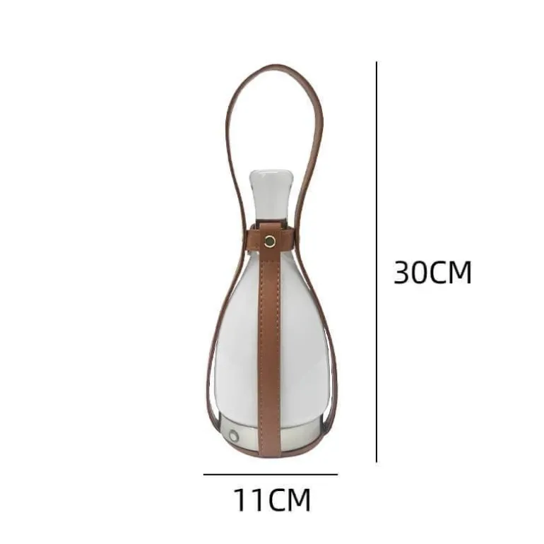 Verschönern Sie Ihr Ambiente mit dieser elegant gestalteten Weinflaschenlampe, die sich perfekt für den Einsatz am Bett und im Freien eignet. Die Lampe aus robustem Glas und weichem Leder misst 11 x 30 cm und passt perfekt zu verschiedenen Einrichtungsstilen.
