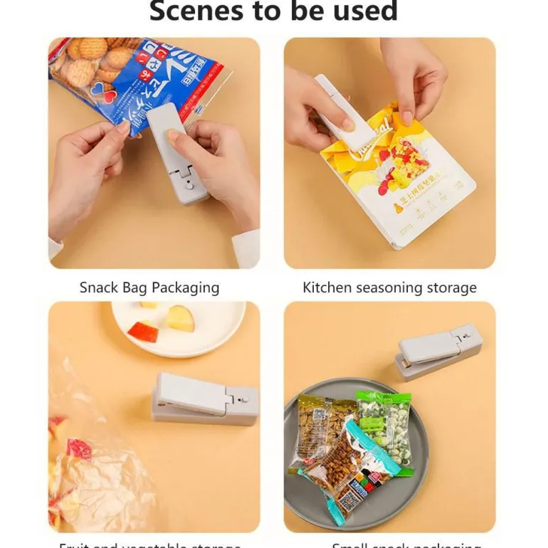 Dieser Mini-Beutelverschließer eignet sich perfekt zum Verpacken von Snacks, verhindert Lebensmittelabfälle und erhält die Qualität Ihrer Lebensmittel. Dank seiner kompakten Größe lässt er sich problemlos in jeder Ecke Ihrer Küche oder Ihres Wohnzimmers verstauen und ist bei Bedarf immer griffbereit.