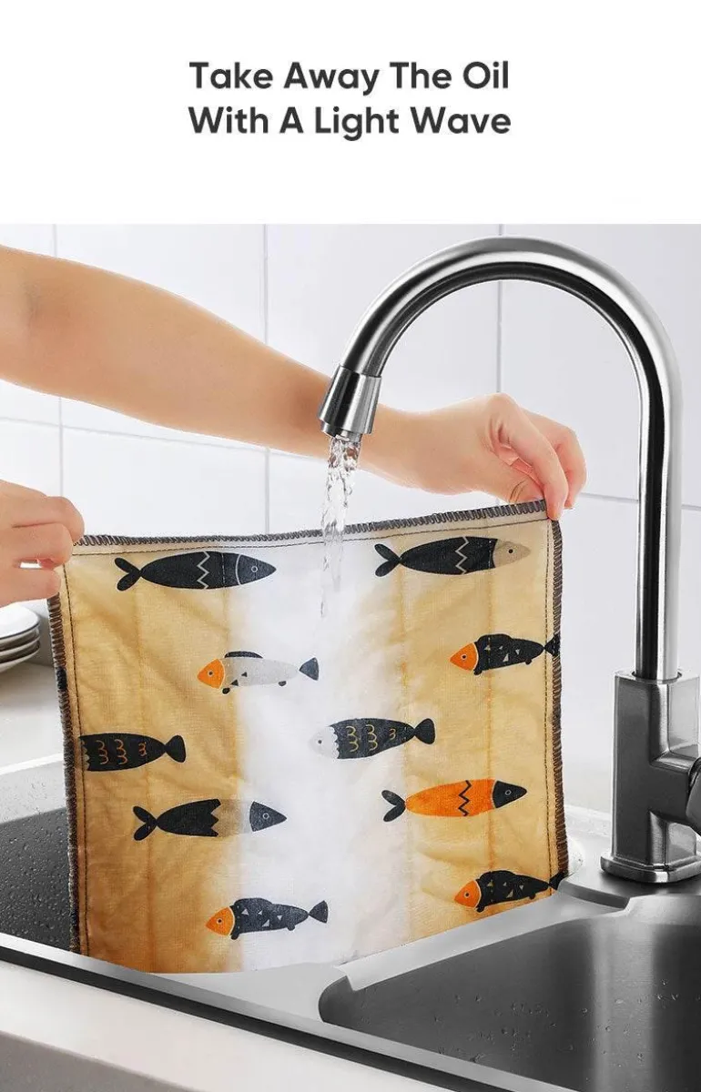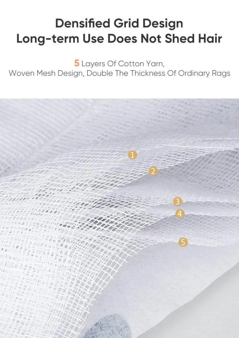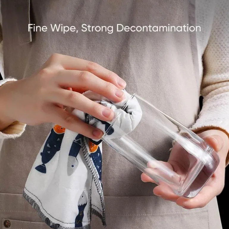 Diese Tücher bestehen aus acht Lagen Baumwolle und sind so konzipiert, dass sie während des Gebrauchs nicht fusseln und so eine effektive und zuverlässige Reinigungsleistung bieten. Sie lösen fettigen Schmutz auf natürliche Weise mit nur Wasser und sorgen so für müheloses und effizientes Reinigen in der Küche.