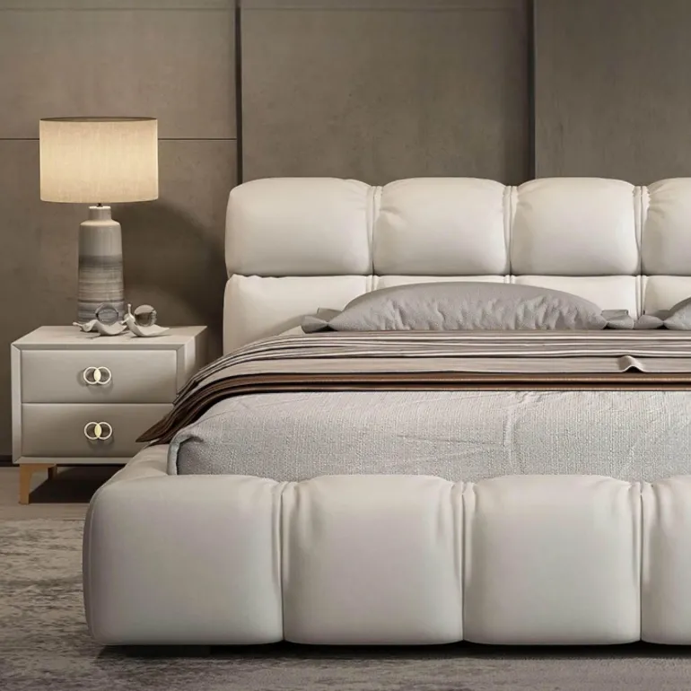 Die markanten, quadratischen, blasenartigen Steppungen des Bettes sorgen für einen ansprechenden optischen Reiz und verleihen jedem modernen Schlafzimmer einen einzigartigen Charme. Mit dem Wilfred Bett entscheiden Sie sich für ein stilvolles Statement, das Eleganz und Funktionalität perfekt vereint und die Essenz des modernen Wohnens neu interpretiert.