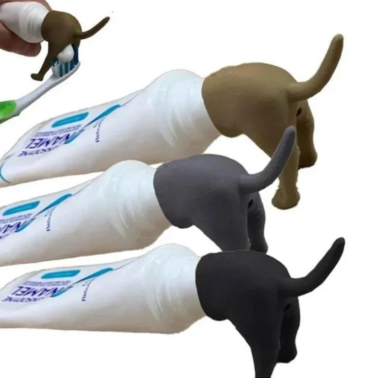 Verleihen Sie Ihrer Zahnpflegeroutine mit diesem kreativ gestalteten Zahnpastaspender mit lustigem Hundeschwanz eine spielerische Note. Dieses witzige Gadget ist mit den meisten Zahnpastatuben kompatibel und ermöglicht Ihnen jedes Mal die perfekte Dosierung. Sein charmantes, vom Hundehintern inspiriertes Design verschönert nicht nur Ihren Morgen, sondern zaubert Ihnen auch beim Zähneputzen ein Lächeln ins Gesicht. Praktisch und benutzerfreundlich – das ideale Geschenk für Tierliebhaber und alle, die im Alltag eine Prise Humor zu schätzen wissen.