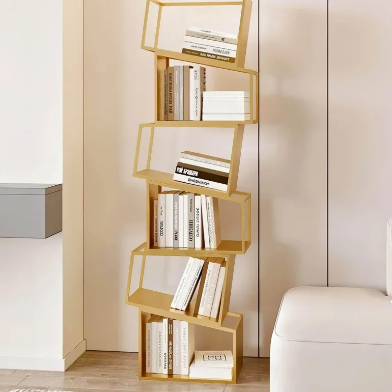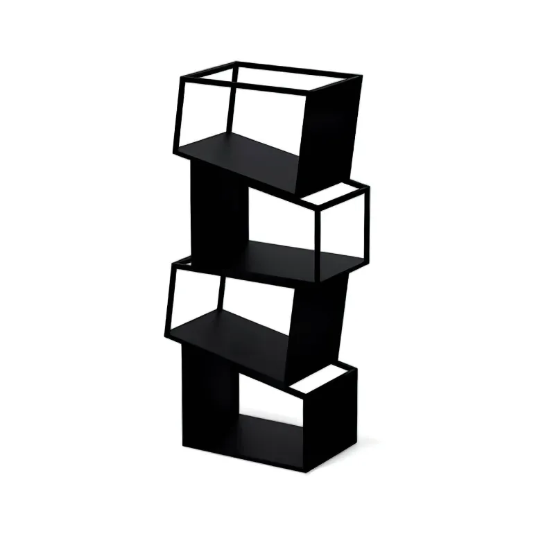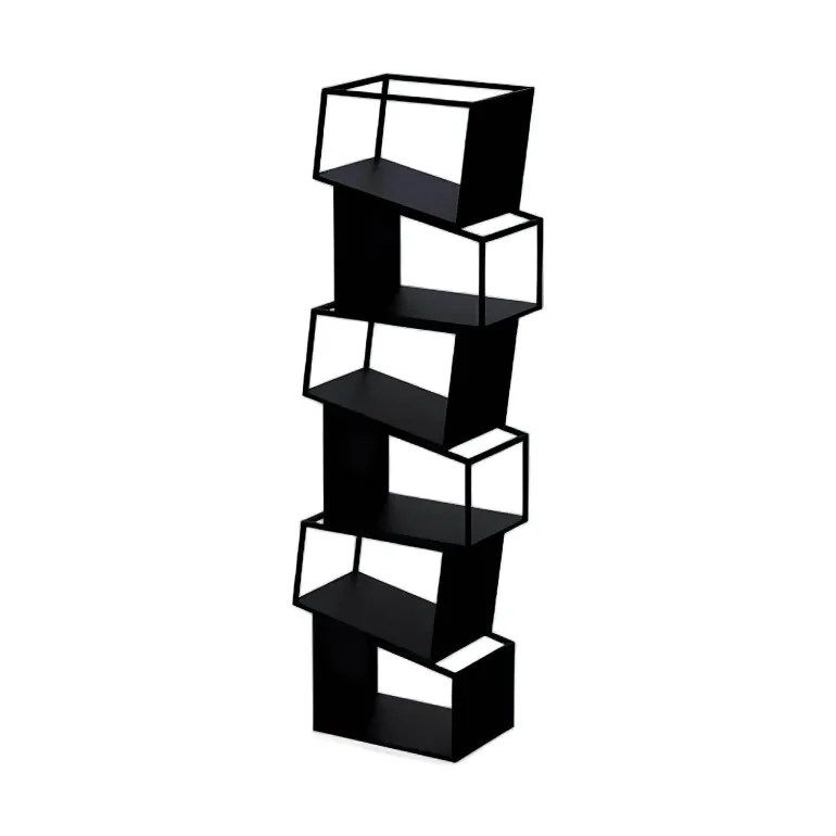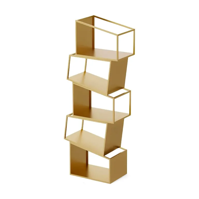 Erleben Sie die perfekte Kombination aus Funktionalität und modernem Design mit diesem modernen Bücherregal. Aus robustem Metall gefertigt, bietet dieses Bücherregal robusten Halt und eine zeitlose Ästhetik und ist damit eine wertvolle Ergänzung für jeden Wohnraum. Das Zane Bücherregal besticht durch die auffällige Anordnung asymmetrischer Regalböden, die von links nach rechts verlaufen und eine dynamische und kunstvolle Silhouette bilden, die mühelos die Blicke auf sich zieht.