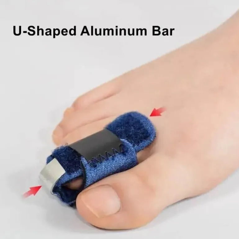 * **Verstellbarer Aluminiumstab**: Jede Zehenschiene verfügt über einen flexiblen Aluminiumstab, der sich leicht an die Zehenspitze anpassen lässt und so sicher von der Zehenspitze bis zum Gelenk sitzt. Diese Anpassung gewährleistet einen festen Sitz, der Ihren individuellen Bedürfnissen entspricht.
