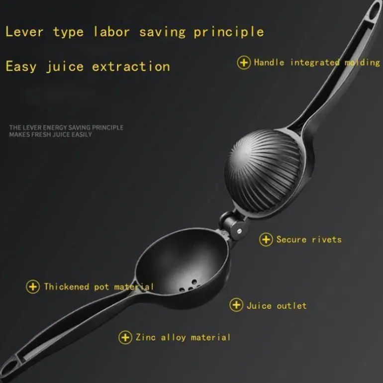 Für erfrischenden Zitronensaft schneiden Sie einfach eine Zitrone in zwei Hälften, legen sie in die Presse und drücken leicht auf den Griff. Das horizontale Design ermöglicht effizientes Entsaften und macht die Presse zu einer praktischen Ergänzung für Ihre Küche. Ob Sie Ihrem Lieblingsgericht oder Cocktail einen Spritzer Zitrone hinzufügen – diese Saftpresse ist ein zuverlässiges Werkzeug für jeden Zitrusliebhaber.