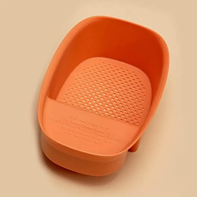 Dieser aus hochwertigem Kunststoff gefertigte Abtropfkorb für die Spüle ist robust und langlebig und verfügt über eine glatte Oberfläche und abgerundete Kanten, um Kratzer zu vermeiden.